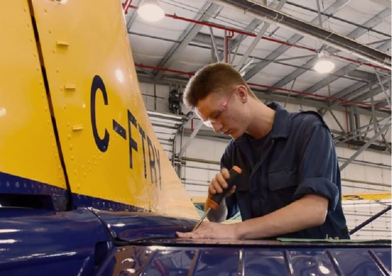 “This is really fun,” he said with a grin. “I love working on the aircraft and working with the crew here. The things they have taught me are really cool, and they have integrated me into the AME lifestyle. Working here in the hangar is so special. Not many people get to do that.”