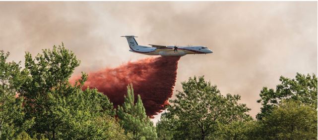 Land-based tankers, loaded with orange-coloured retardant, can only do part of a firefighting mission and are augmented by the amphibs – the float-equipped Fire Boss and purpose-built Canadair CL-215/CL-415s. These planes skim the surface of a nearby lake or river, fill their tanks and quickly fly to the fire location to maintain a high frequency of water drops.