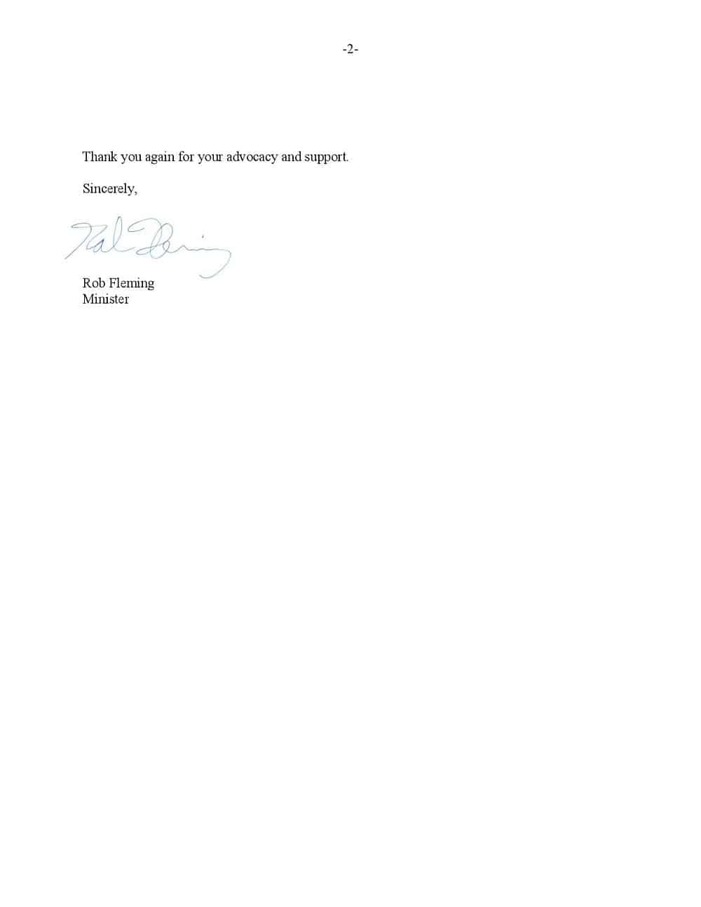 LINK: Hon Rob Fleming Thank You Letter
