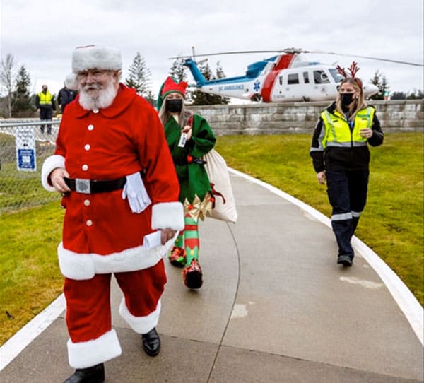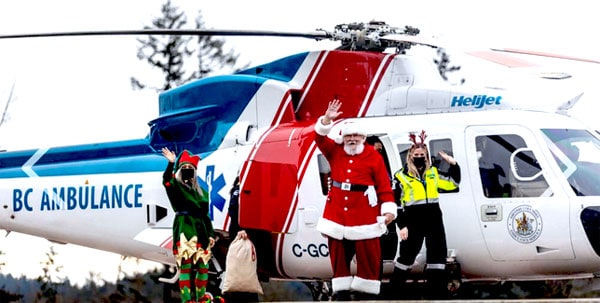 Santa used a B.C. Ambulance Service helicopter to visit children and their families at a number of B.C. hospitals Tuesday, beginning at Victoria General Hospital then heading to Nanaimo Regional General Hospital before making a number of stops on the mainland.